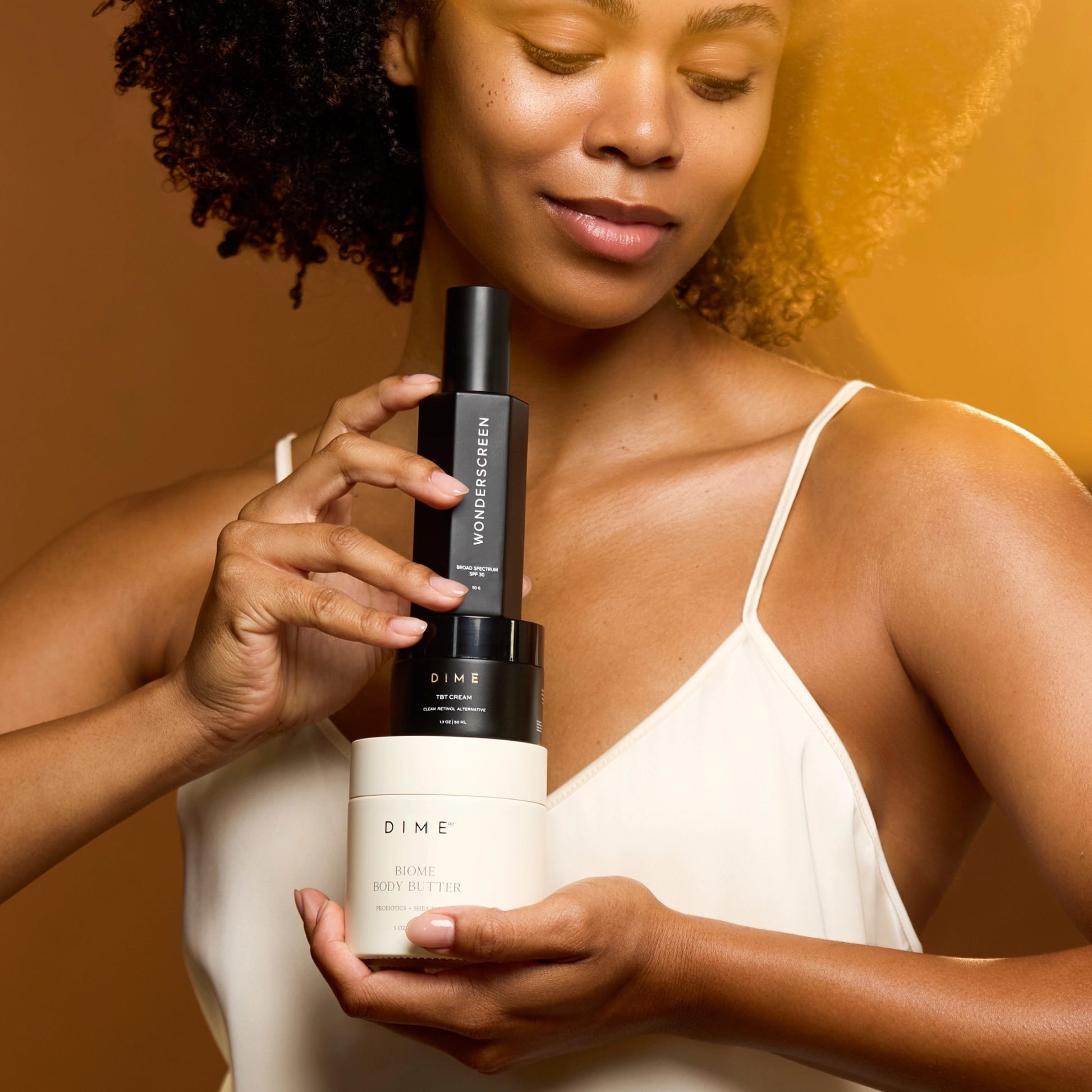 Start by cleansing skin with Gentle Jelly Cleanser. Then apply serums and moisturizers from thinnest to thickest, following with SPF. Follow up with full-body skincare by using our Body Biome Butter.