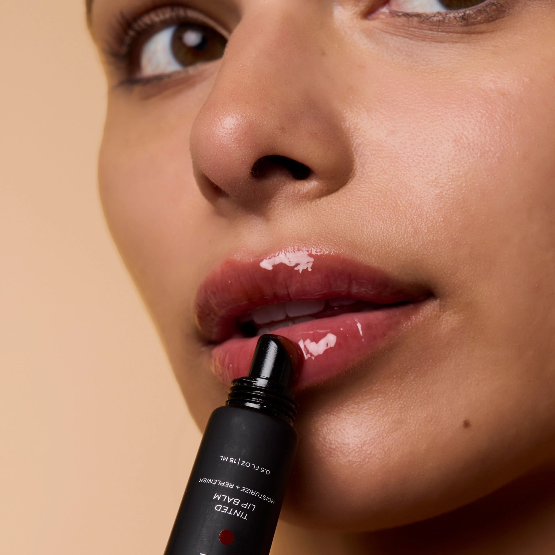 Apply Tinted Lip Balm to lips as part of your skincare routine. Reapply throughout the day as needed or desired.